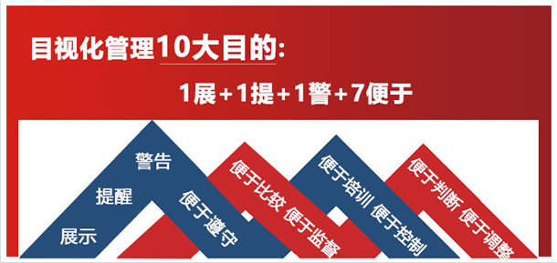 整潔、規(guī)范、安全、有序的生產(chǎn)環(huán)境。標(biāo)示管理界限,標(biāo)明正常與異常的定量管理連界限,使之一目了然。 |